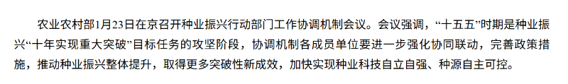 農(nóng)業(yè)農(nóng)村部:“十五五”時(shí)期是種業(yè)振興“十年實(shí)現(xiàn)重大突破”目標(biāo)任務(wù)的攻堅(jiān)階段