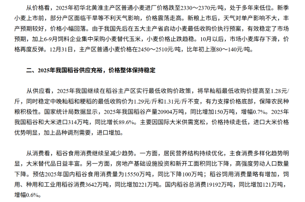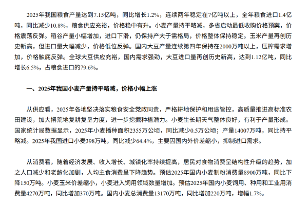 2025年我國糧食市場運行形勢及2026年展望