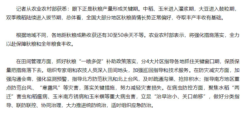 農(nóng)業(yè)農(nóng)村部部署加強(qiáng)田間管理等,多措并舉保障秋糧豐收